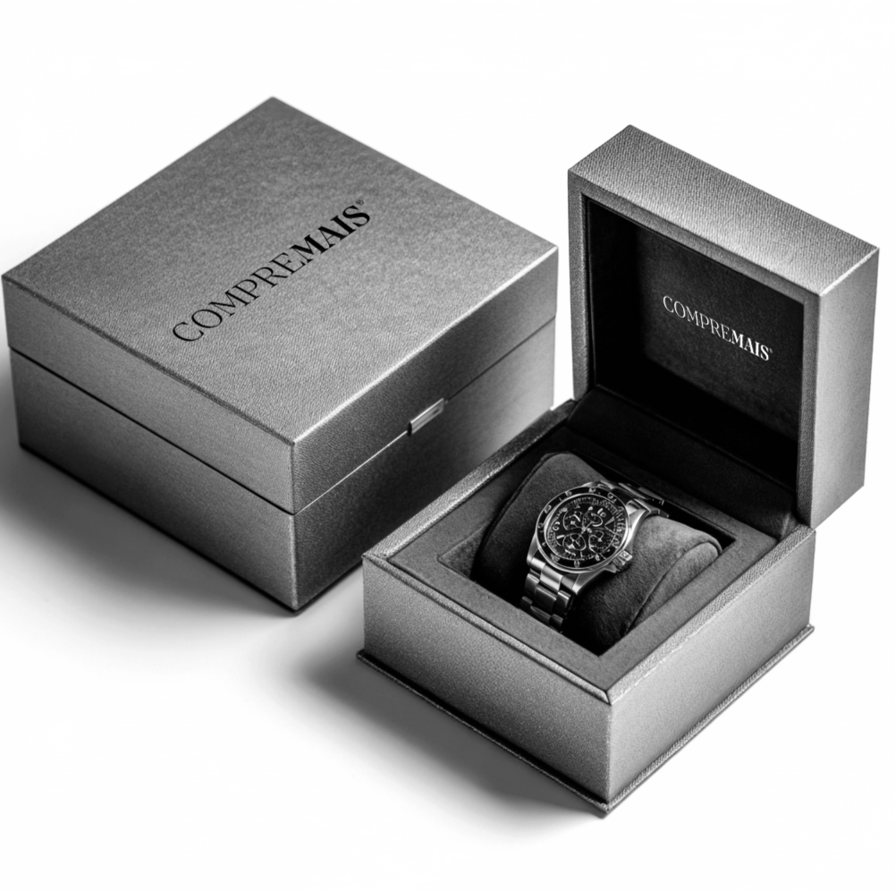 Na Compre Mais, acreditamos que o relógio vai muito além de marcar o tempo: ele é um símbolo de estilo, personalidade e conquista. Nossa marca nasceu da paixão por unir sofisticação e acessibilidade, trazendo ao público masculino relógios que combinam design moderno, qualidade e durabilidade.